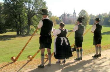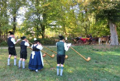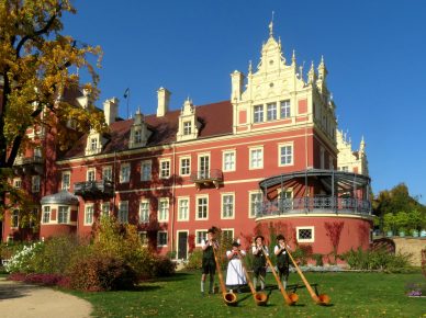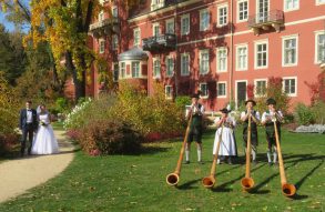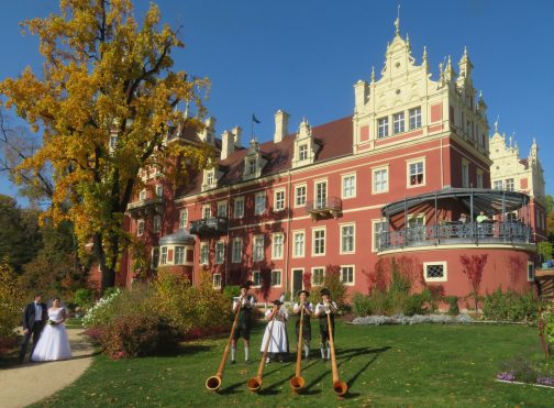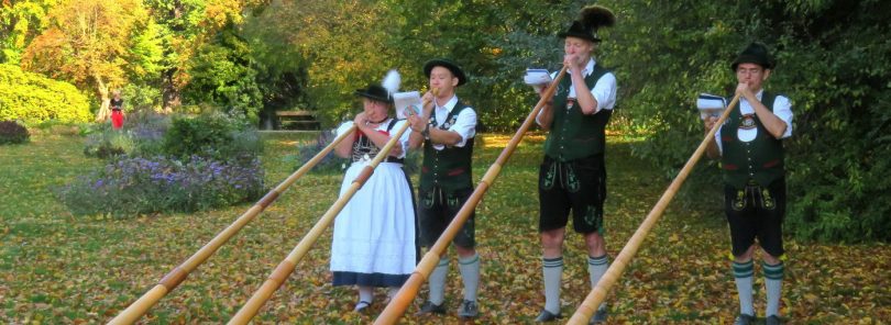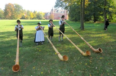 Im Rahmen einer Familienfeier in Bad Muskau, an der deutsch-polnischen Grenze, trafen sich Bayern aus Dortmund und Berlin zu einem außergewöhnlichen Konzert mit ihren Alphörnern. Bekannt ist die Kurstadt Bad Muskau, nördlich von Görlitz, durch den wohl schönsten Landschaftspark Europas. Fürst von Pückler, legte ab 1815 in seiner Heimatstadt dieses landschaftsarchitektonische Meisterwerk an.