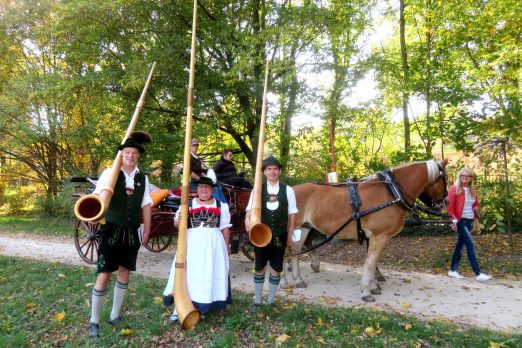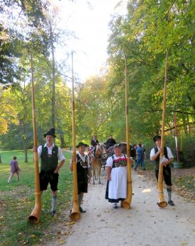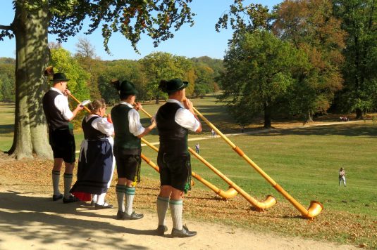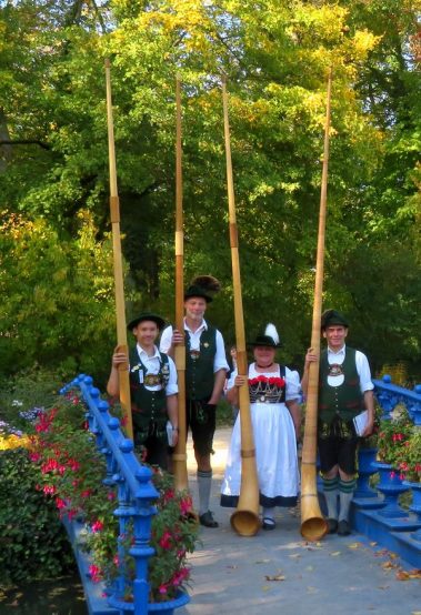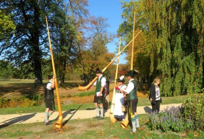 Unter weiß-blauem Himmel und in bayerischer Tracht gab das Alphorn-Ensemble Dortmund-Berlin im Fürst-Pückler-Park ein alpenländliches Konzert , dass den zahlreichen Besuchern aus Polen, Deutschland und der Welt sicherlich in bleibender Erinnerung sein wird.