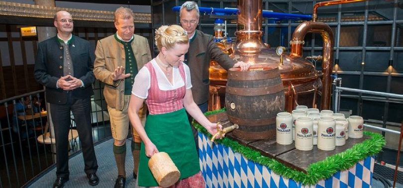 In der Paulaner Brauerei München wurde am heutigen Dienstag die frisch gekrönte Bayerische Bierkönigin Veronika Ettstaller in die hohe Kunst des Anzapfens eingewiesen.