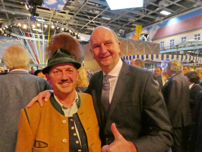 Seit dem Mauerfall gibt es eine touristische Freundschaft zwischen den deutschen Urlaubs-Regionen Spreewald im Brandenburg und Chiemsee in Oberbayern. Auch bei der heurigen Grünen Woche in Berlin kommt diese Freundschaft zum Tragen, wenn sich Vertreter beider Tourismusgebiete gegenseitig in den benachbarten Hallen (22 und 23) besuchen. Unsere aktuellen Bilder zeigen einige Eindrücke vom Empfang des Landes Brandenburg in der Brandenburg-Halle. Weitere Aktivitäten werden am Freitag, 26. Januar Auftritte auf der Bühne von Antenne Brandenburg, mittags der Besuch einer Landrats-Delegation im Biergarten der Bayernhalle sowie am Nachmittag ein Empfang in der Staatskanzlei Potsdam zu Ehren der langjährigen Freundschaft. Dabei spielen Samerberger Musikanten auf, die schon vielfach in Berlin, im Spreewald und im Land Brandenburg zu Gast und dabei beste Botschafter für ihren Landkreis Rosenheim waren.