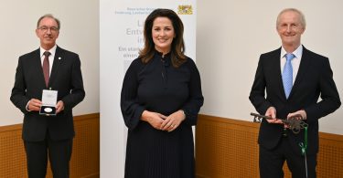 Landwirte, Gärtner und Winzer tragen in ihrer täglichen Arbeit aktiv zum Klimaschutz und zur Anpassung an den Klimawandel bei. Besonders gelungene Beispiele von drei Betrieben hat Landwirtschaftsministerin Michaela Kaniber am Mittwoch mit dem „Bayerischen Klimapreis 2020“ ausgezeichnet. Die mit jeweils 4.000 Euro dotierten Preise erhielten der landwirtschaftliche Betrieb von Monika und Helmut Geisberger aus Heldenstein (Lkr. Mühldorf am Inn), die Biogasanlage Holzheim GmbH Co. KG in Holzheim (Lkr. Dillingen a. d. Donau) sowie die Meier Schmidt Weinerlebnis GmbH aus Markt Nordheim (Lkr. Neustadt a. d. Aisch-Bad Windsheim). „Die innovativen Ideen und Konzepte der Preisträger zeigen vor allem Familienbetrieben praktische Lösungsmöglichkeiten auf, die als Vorbilder dienen können“, sagte die Ministerin.