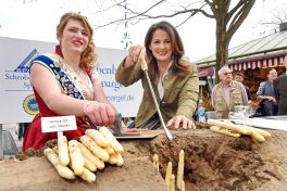 Wer heimischen Spargel liebt, kommt jetzt wieder voll auf seine Kosten: Mit einem symbolischen Anstich auf dem Münchner Viktualienmarkt hat Landwirtschaftsministerin Michaela Kaniber am heutigen Donnerstag gemeinsam mit der Schrobenhausener Spargelkönigin Lena Hainzlmair die bayerische Spargelsaison offiziell eröffnet. „Das warme Wetter der vergangenen Tage hat bei unserem Freiland-Spargel für einen tüchtigen Wachstumsschub gesorgt“, sagte Kaniber. Endlich sei landesweit wieder heimischer Spargel auf dem Markt. Bis Johanni (24. Juni) gibt es das begehrte Edelgemüse nun erntefrisch und aus regionalem Anbau. Dann endet die Saison, damit die Pflanzen sich erholen können. Statistisch gesehen isst jeder Bayer in diesen zweieinhalb Monaten rund 1,5 Kilo Spargel.