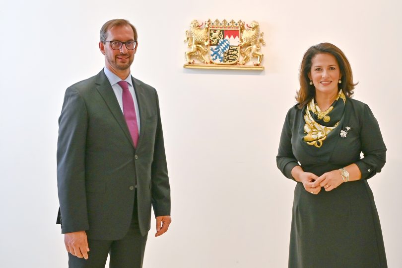 Foto StMELF  zeigt Forstministerin Michaela Kaniber mit Manfred Kröninger, künftiges Vorstandsmitglied Finanzen der Bayerischen Staatsforsten AöR.