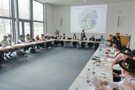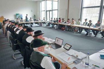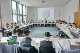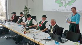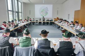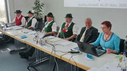Im WWK-Forum von Obermühl in der Gemeinde Raubling im Landkreis Rosenheim sind die Mitglieder des Landesausschusses vom Bayerischen Trachtenverband zusammengekommen, um zwei Tage lang weitere Abstimmungen und Planungen für die heimatliche Kulturarbeit in Bayern vorzunehmen. Die Gauvorstände der 22 Gauverbände, die Sachgebietsleiter und die Ehrenmitglieder des Bayerischen Trachtenverbandes erörtern sich unter der Leitung von Landesvorsitzenden Max Bertl, dem im Rahmen der Tagung zum 74. Geburtstag gratuliert werden konnte. Landesschriftführerin Hildegard Hoffmann überreichte namens der für die Tracht in Bayern Verantwortlichen ein Glas Bienenhonig und wünschte damit weiterhin gute Gesundheit.