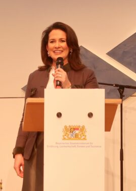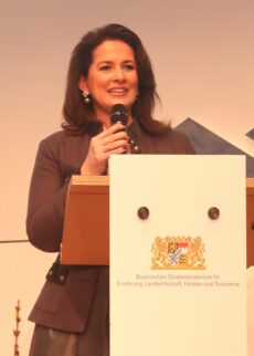 Unter den Ehrengästen war auch der neue EU-Agrarkommissar Christophe Hansen. Michaela Kaniber bezeichnete ihn als Hoffnungsträger der europäischen Landwirtschaft. Denn seine Vorstellungen stimmen zum größten Teil mit denen der bayerischen Landwirtschaftspolitik überein. Als künftigen Bundeslandwirtschaftsminister wünscht sich die Ministerin Günther Felßner, den Präsidenten der Bayerischen Bauernverbandes. Er ist ihrer Meinung nach ein Experte seiner Branche. Für ein Loblied auf die Bayernhalle bedankte sie sich bei Dr. Christian von Boetticher, dem Vorsitzenden der Bundesvereinigung der Deutschen Ernährungsindustrie. Ein herzliches Vergelt’s Gott galt den Frauen und Männer, die an der Gestaltung der Bayernhalle beteiligt waren.
