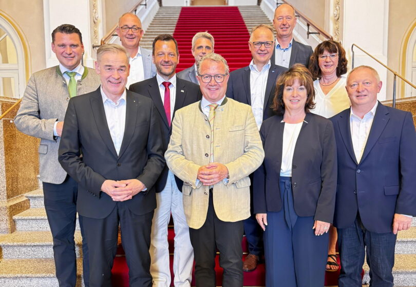 1.Reihe von links: Peter Berek, stv. Präsident des Bayerischen Tourismusverbandes und Vorsitzender Bay. Heilbäderverband, Klaus Stöttner, Präsident des Bayerischen Tourismusverbandes und Präsident Tourismus Oberbayern München, Maria Rita Zinnecker, Vorsitzende Tourismusverband Allgäu/Bayerisch-Schwaben, Tomas Bold, Vorsitzender Tourismusverband Franken