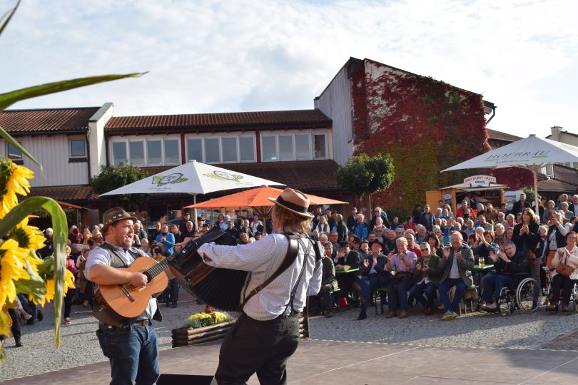 Unaufgeregt, authentisch, zünftig. So lässt sich die Bayerische Woche in Bad Gögging wohl am besten beschreiben. Eine Woche voller Veranstaltungen, die das bayerische, besonders das niederbayerische Lebensgefühl widerspiegelten. Besonders wichtig war den Veranstaltern, der Tourist-Information Bad Gögging, dabei die „Echtheit“. Gekünsteltes oder Klischeehaftes suchte man im Programm vergeblich. Das kam auch bei den Besuchern der bayerischen Woche gut an. Schon beim Auftaktkonzert im Kurhaus mit der Gruppe „Kelsbachbuam“ und Gstanzlsänger Edi Albrecht war der Kursaal bis auf den letzten Platz gefüllt. Das passende kulinarische Angebot lieferte dabei das Kurcafé. Bayerische Musik und regionale Küche, diese Kombi war auch bei der Wirtshausmusi ein voller Erfolg. Die Gruppe „Altbairisch Blech“ sorgte am Donnerstag der Bayerischen Woche für zünftige Stimmung im Kurhotel & Klinik Kaiser Trajan, im Gasthof Eisvogel, im Hotel & Gasthof zur Sonne und beim Alten Wirt. Neben Einheimischen, fanden sich viele Urlauber Bad Göggings unter den Gästen. Ein Ehepaar aus Bonn zeigte sich begeistert von den abwechslungsreichen Programmpunkten und nahm gleich an mehreren teil. Die Fahrt zum Hopfenhof der Familie Ostler in Ulrain hat sie dabei besonders beeindruckt: „Durch den Blick hinter die Kulissen hat man erst gesehen, wieviel Arbeit in der Ernte des Hopfens steckt. Auch dass es so viele verschiedene Sorten gibt war uns bisher nicht bewusst.“ Die Erlebnisfahrt durch die Holledau am Freitag begleitet von Gästeführer Peter Fröhlich, mit dem Besuch des Deutschen Hopfenmuseums, war für sie die perfekte Gelegenheit noch mehr über die Hopfenregion zu erfahren. Mit weiteren bayerischen Konzerten und einem Karl-Valentin-Abend mit Schauspieler Ferdinand Dörfler, bekannt aus „Dahoam is Dahoam“, stimmte man sich die ganze Woche über auf den Höhepunkt, das traditionelle Erntedankfest am Kurplatz in Bad Gögging, ein.