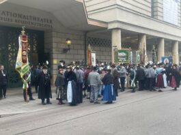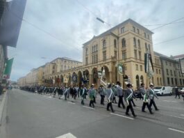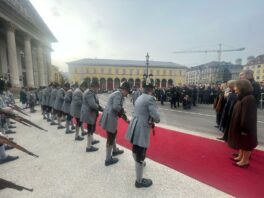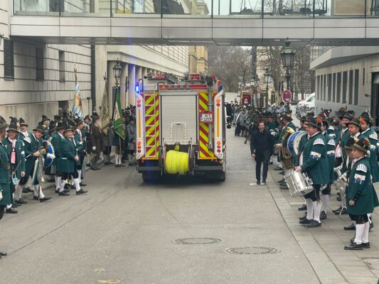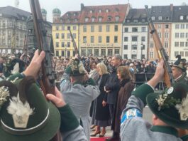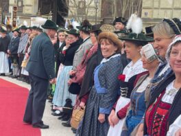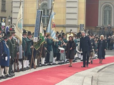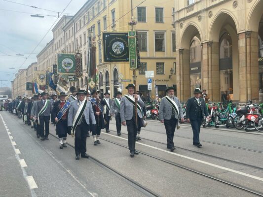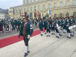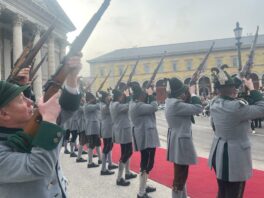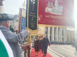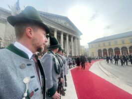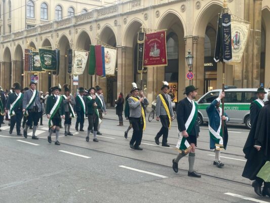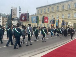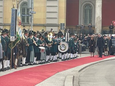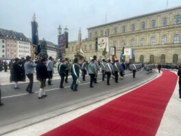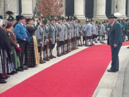 Unsere ersten Bilder zeigen Eindrücke vom Ehrenspalier des Bundes der Bayerischen Gebirgsschützen und des Bayerischen Trachtenverbandes mit ihren Fahnenabordnungen.
