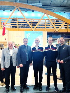 Fotos: Bayernbund Kreisverband Rosenheim – Eindrücke vom Besuch der Rosenheimer Delegation am Stand des Landes Norwegen. 1. V.l.: Christian Glas, Landrat Otto Lederer, Konstantin Zimmermann mit Mitarbeiter, Oberbürgermeister Andreas März.