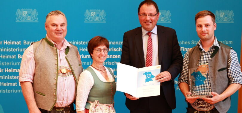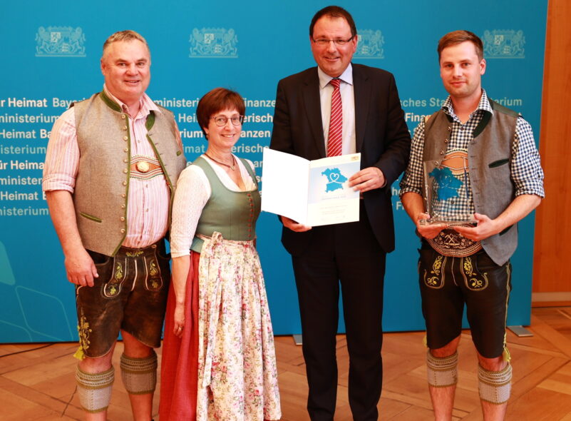 Foto: Staatsministerium der Finanzen und für Heimat – Verleihung durch Staatssekretär Martin Schöffel an die Preisträger Josef Bachmayr GmbH & Co. KG aus dem Landkreis Traunstein.