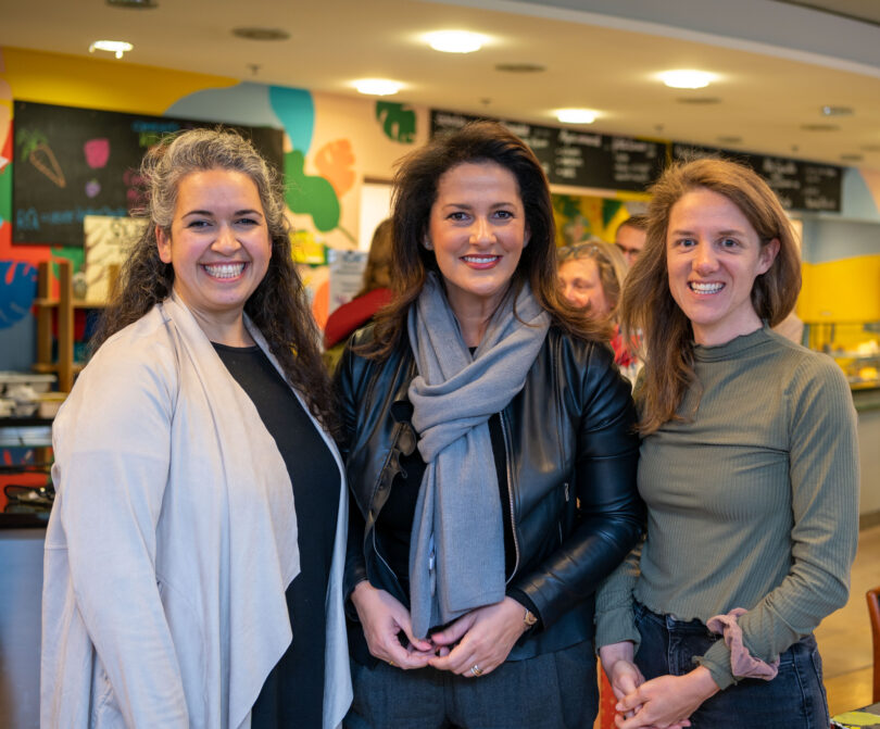 Bericht und Bilder: Bayer. Landwirtschaftsministerium / Judith Schmidbauer – Besuchs der „Community Kitchen“ von links: Günes Seyfarth, Ministerin Michaela Kaniber und Judith Stiegelmayr.