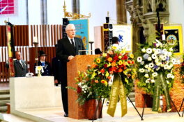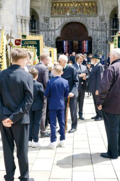 Wolfgang Kink war ein, wie man heute sagt, „ausgezeichneter Networker“, er machte Karriere bei der Polizei bis zum Kriminalhauptkommissar und er liebte seine Vereine. Jetzt ist sein Leben zu Ende gegangen und die Familie konnte noch gemeinsam von ihm Abschied nehmen. Er wird jetzt wohl, wie der Pfarrvikar Jaime Pasqual Hannig mit einem leichten Schmunzeln bemerkte, einen neuen Verein gründen: die Münchner im Himmel. Schön war, dass die Familie in die Gestaltung des Requiems eingebunden war. Die Enkelkinder übernahmen die Lesung.