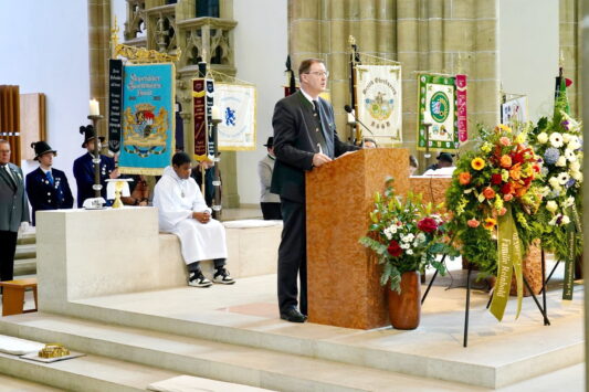 Viele Ehrengäste und Wegfährten waren gekommen, um ihm die letzte Ehre zu erweisen. Die Staatsregierung wurde vertreten durch den Staatsminister des Innern, für Sport und Migration Joachim Herrmann, MdL, und den Staatsminister für Wirtschaft, Landesentwicklung und Energie Hubert Aiwanger, MdL. Für das Haus Wittelsbach waren S.K.H. Herzog Franz von Bayern und S.K.H. Prinz Ludwig von Bayern gekommen. Mit einem Auszug aus der Bergpredigt über die Seligkeit wurde der verstorbene Ehrenlandesschützenmeister und stellvertretende Landesvorsitzende des Bayernbunds Wolfgang Kink beim Requiem in St. Paul in München äußerst zutreffend charakterisiert.