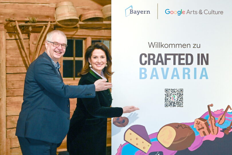 Bericht und Foto: Bayerisches Landwirtschafts- und Tourismusministerium / Judith Schmidhuber/StMELF . Das Bild zeigt Tourismusministerin Michaela Kaniber gemeinsam mit Dr. Wieland Holfelder, Vizepräsident Engineering and Site Lead Google Munich, bei der Eröffnungsfeier des Projektes „Crafted in Bavaria“.