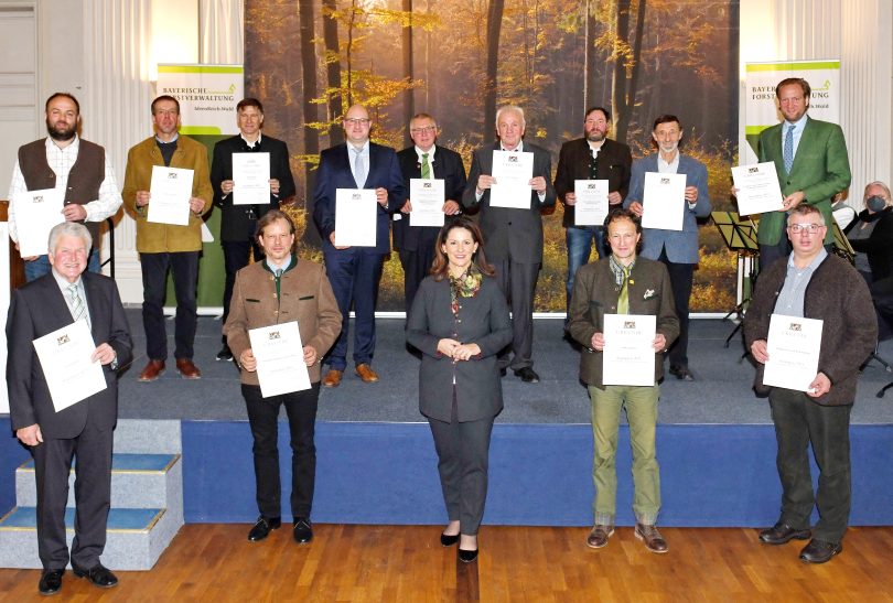 Für die vorbildliche Bewirtschaftung und Pflege ihrer Wälder hat Forstministerin Michaela Kaniber 14 private und kommunale Waldbesitzer sowie einen forstwirtschaftlichen Zusammenschluss mit dem Staatspreis für vorbildliche Waldbewirtschaftung ausgezeichnet. „Unsere bayerischen Waldbesitzerinnen und -besitzer sind der Schlüssel zum Erfolg, wenn es um den Aufbau klimastabiler Zukunftswälder geht. Der Staatspreis würdigt in besonderem Maß das langjährige und persönliche Engagement der Preisträger in ihren Wäldern“, lobte Kaniber die Preisträger am Mittwoch beim Festakt in der Münchner Residenz.