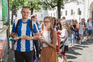 Warteschlange beim Verteilen der Speisen am Geschwister-Scholl-Platz