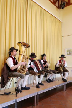 Anlässlich der Grünen Woche frisch aus dem oberbayerischen Chiemgau angereist, gastierte die vierköpfige Blaskapelle vom Samerberg im Saal des Bürgertreffpunkts und präsentierte am 21. Januar 2026 ein buntes Programm aus ihrem reichen Repertoire. Noch ehe sie den ersten Ton bliesen, wurden sie vom Vorsitzenden des Fördervereins Bürgertreffpunkt Lichterfelde West e.V. (https://lichterfelde-west.net/), Harald Hensel, und Andreas Ohrt, dem Leiter der Freizeitstätte, herzlich willkommen geheißen.