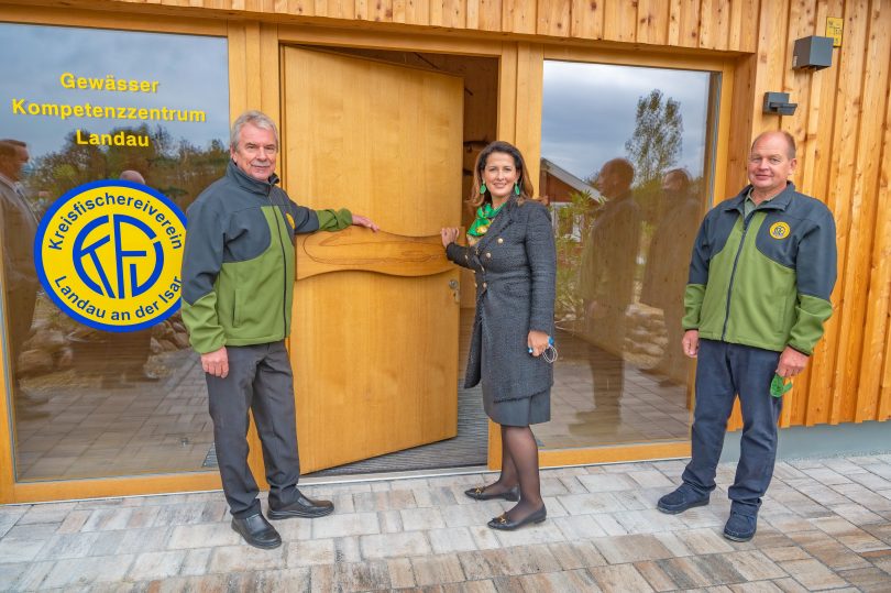 Foto zeigt Ministerin Michaela Kaniber bei der Eröffnung des Gewässerkompetenzzentrums in Landau a.d. Isar, das mit LEADER-Fördermitteln errichtet wurde – von Judith Schmidhuber / StMELF honorarfrei.