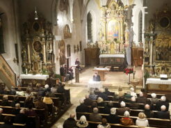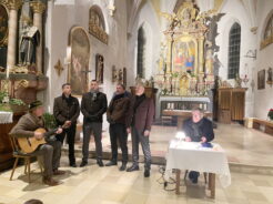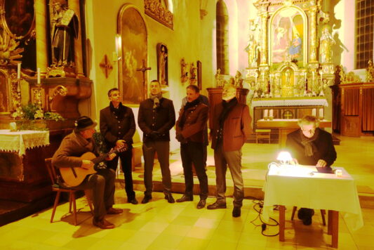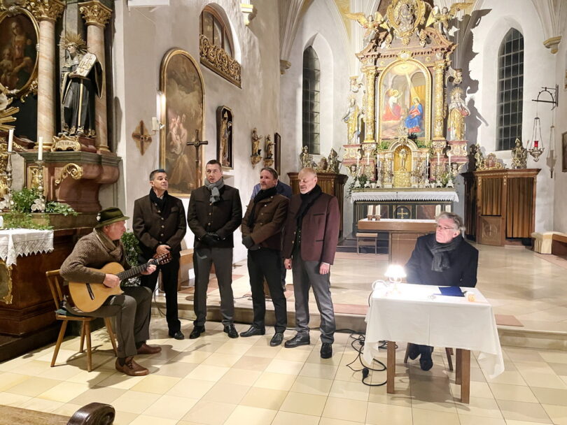 Eine faszinierende und literarische Reise an die Wurzeln des Weihnachtsfestes zum Start des heurigen Advents bot der Bayernbund Kreisverband Rosenheim seinen Mitgliedern und Gästen in der gut besetzten Pfarrkirche „Mariä Himmelfahrt“ in Törwang auf dem Samerberg. Hierzu konnte Kreisvorsitzender Christian Glas im Beisein von Landesvorsitzendem Sebastian Friesinger den Münchner Turmschreiber Gerald Huber sowie den Reischenharter Viergesang gewinnen und begrüßen.
