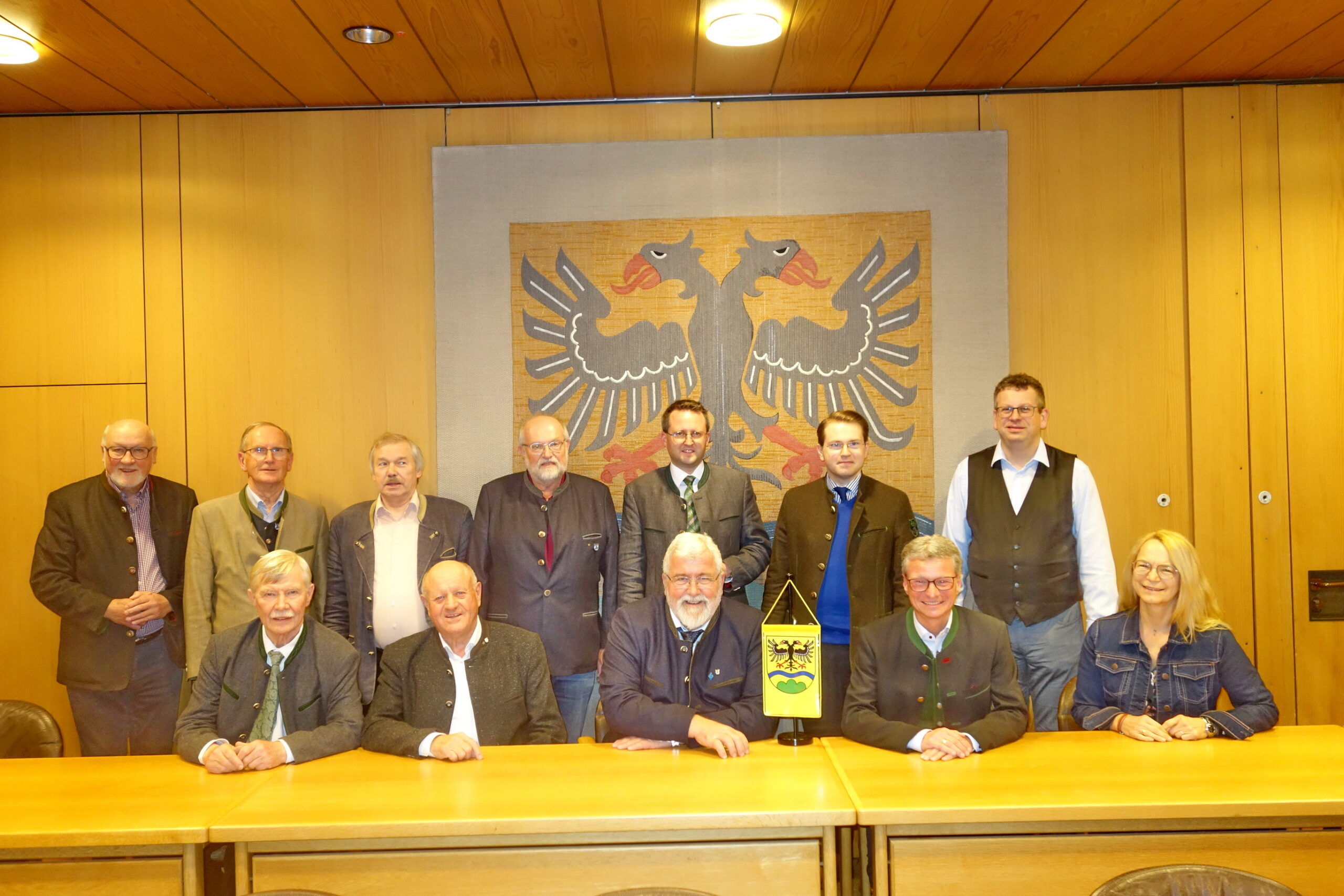 Gruppenbild im Sitzungssaal des LRA Deggendorf: Vordere Reihe von links: Dr. Edgar Forster (Kreisverband Dachau), Christian Glas (Stv. Landesvorsitzender), Wast, Bernd Sibler (Stellv. Landesvorsitzender), Monika Kaltner (Kreisverband Holledau), Hinter Reihe von links: Georg Stahl MdL a.D. (Kreisverband Neustadt/WN, Weiden, Tirschenreuth), F.L. ((Redakteur WBR), Konrad Schwarzfischer (Kreisverband Regensburg), Wilfried Funke (Redakteur WBR), Stephan Schlier (Landesschatzmeister), Thomas Mittermeier (Kreisverband Deggendorf), Thomas Sax (Landesschriftführer).