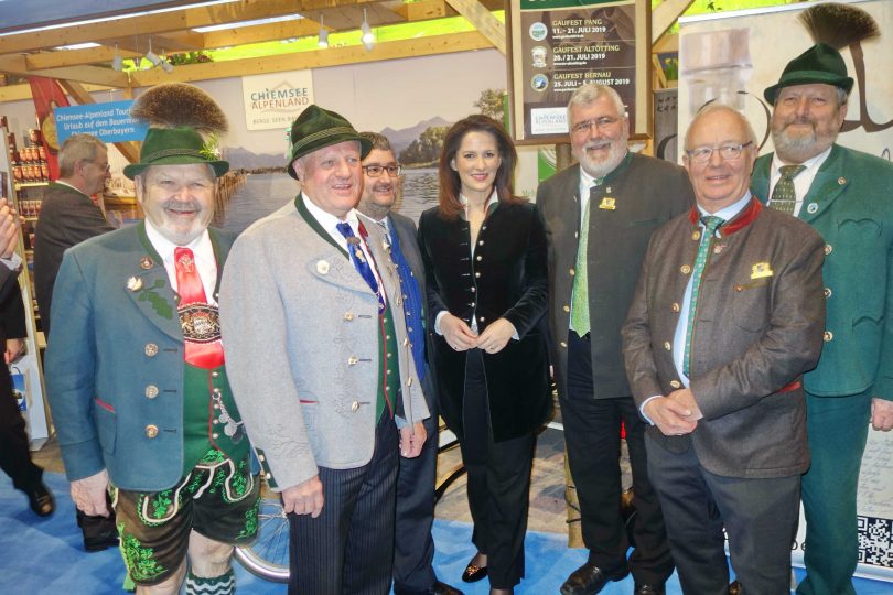 Vielfältige Kontakte und Gespräche, unter anderem mit der Bayerischen Landwirtschaftsministerin Michaela Kaniber konnten zahlreiche Bayernbundmitglieder mit ihrem Landesvorsitzenden Sebastian Friesinger und mit Rosenheims Kreisvorsitzendem Christian Glas bei ihrem Besuch auf der Grünen Woche in Berlin pflegen und führen. “Die Bayernhalle, die dortige Gemeinschaftspräsentation von Stadt und Landkreis Rosenheim, die Bewirtung durch den Samerberger Entenwirt und Bayernbund-Mitglied Peter Schrödl sowie die Auftritte der vielen Brauchtumsgruppen sind ganz im Sinne einer authentischen Darstellung des bayerischen Lebensgefühls”, so Sebastian Friesinger zu  Max Bertl, dem Landesvorsitzenden des Bayerischen Trachtenverbandes bei einem Besuch am Informationsstand des Trachtenverbandes.