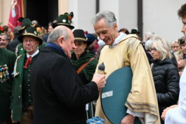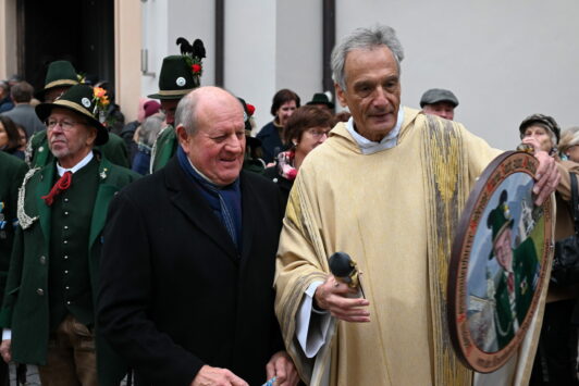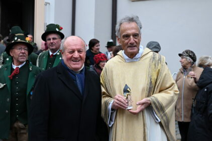 Als Pfarrer Andreas Maria Zach nach 16 Jahren Dienst in der Kirche St. Nikolaus und für die Stadt Rosenheim seinen Dienst beendete, da war es für den Bayernbund-Kreisverband Rosenheim und dessen Vorsitzenden Christian Glas ein Herzensbedürfnis, nach dem Gottesdienst persönlich „Vergelt´s Gott“ zu sagen. Dabei erklärte Glas:
