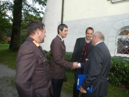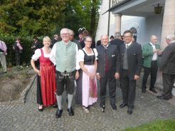 In Vertretung von Landrat Wolfgang Berthaler hieß Kulturreferent Christoph Maier-Gehring den Bayernbund auf Schloss Hartmannsberg willkommen und stellte dessen interessante Geschichte vor bis das Schloss samt Areal vom Landkreis Rosenheim im Jahr 1993 erworben und auch zum Naturschutzgebiet erklärt worden ist.