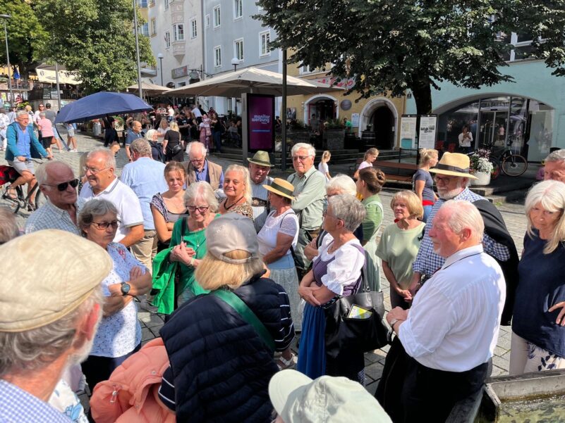 Zum Kulturprogramm des Bayernbund-Kreisverbandes Rosenheim gehörte in diesen Sommertagen ein Besuch in Kufstein. Hierzu konnte Erster Vorsitzender Christian Glas eine überaus große Anzahl an Mitgliedern und Interessierten sowie eine Stadtführerin willkommen heißen.