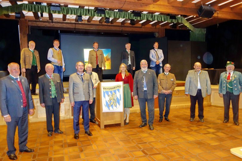 Bezirksrat Sebastian Friesinger aus Albaching bleibt wie in den vergangenen drei Jahren auch in den nächsten drei Jahren Landesvorsitzender des Bayernbundes. Auch seine Stellvertreter Bernd Sibler, Staatsminister für Wissenschaft und Kunst aus Deggendorf, Christian Glas, Erster Bürgermeister von Eggstätt und der Münchner Wolfgang Kink, Ehren-Landesschützenmeister des Bayerischen Sportschützenbundes wurden in ihren Ämtern einstimmig von den 53 Wahlberechtigten bestätigt. Neu ist, dass das Amt des Schatzmeisters nach 13 Jahren vom Rosenheimer Dipl.-Kfm. Matthias Dambach auf Stephan Schlier, dem neuen Ersten Bürgermeister der Stadt Bad Aibling überging. Zu den ersten Gratulanten der neu gewählten Vorstandschaft gehörte Bayerns Wirtschaftsminister und stellvertretende Ministerpräsident Hubert Aiwanger.