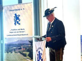 Landesvorsitzender Sebastian Friesinger, der auch Sprecher der Bürgerallianz ist, mahnte an, die bayerische Identität nicht aus den Augen zu verlieren. Beispielhaft nannte er das Programm des Bayerischen Rundfunks und Fernsehens sowie den weltweit beachteten Schützen- und Trachtenzug anlässlich des Münchner Oktoberfestes und ergänzte: „Sowohl mit dem Bayerischen Rundfunk aber auch mit Stadt und Festring München wollen wir den Dialog pflegen zumal es in der Stadt München Umplanungen der historischen Ludwigstraße gibt, die einen Oktoberfestzug nicht mehr ermöglichen ließen“. Stellvertretender Landesvorsitzender Christian Glas dankte Sebastian Friesinger für dessen unermüdlichen Einsatz bei insgesamt 122 Terminen, die er im letzten Jahr für den Bayernbund wahrgenommen und dabei über 13.000 Kilometer ehrenamtlich zurückgelegt hat. Zugleich lud Glas die Bayernbund-Mitglieder für den 3. Oktober zur 30-Jahr-Feier des Kreisverbandes Rosenheim in das Münster von Frauenwörth ein, das Jubiläum wird mit einem Gedenken an die Verstorbenen der Gemeinschaft und mit musikalischer Chorgestaltung unter der Leitung von Hans Berger gefeiert werden.