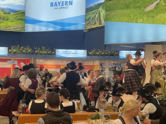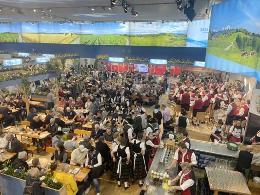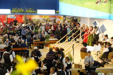 Musikanten aus dem Chiemgau (Kindsbier-Musi) sowie aus Schwaben (Musikverein Aretsried) sowie mit Musikanten und Trachtlern aus Bad Tölz und Bad Heilbrunn prägten am Mittwoch das Bühnenprogramm in der Bayernhalle.