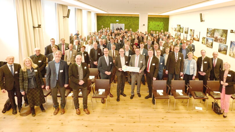 Bericht: Bayer. Landwirtschaftsminiserium – Foto Andreas Pollok/StMELF – Bild zeigt die Teilnehmer der Auftaktveranstaltung „Schwammregionen“ im Veranstaltungssaal des Landwirtschaftsministeriums in München.