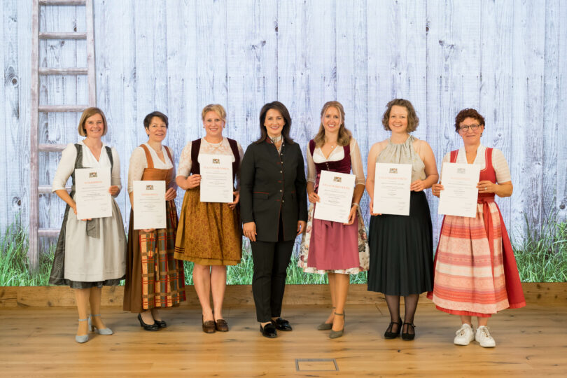 Bericht und Foto: StMELF / Tobias Hase/StMELF – Bild zeigt Staatsministerin Michaela Kaniber gemeinsam mit den sechs Preisträgerinnen des Wettbewerbs.