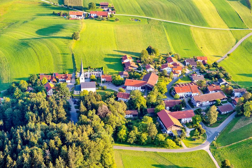 Foto: Rainer Nitzsche – Luftaufnahme im Rosenheimer Land – Greimharting mit Krinning in der Gemeinde Rimsting