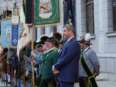 “Die Welt zu Besuch und wir Trachtlerinnen und Trachtler mittendrin. Die verschiedenen Staats- und Regierungschefs wurden von Ministerpräsident Dr. Markus Söder begrüßt. Sie waren sehr angetan farbenprächtigen bayerischen Ehrenspalier. Spalier standen die Gebirgsschützen und eine große Schar bayerischer Trachtler, die diese ehrwürdigen Momente miterleben durften” – so Inge Erb vom Gauverband I, die uns diese besonderen Momente festgehalten hat.