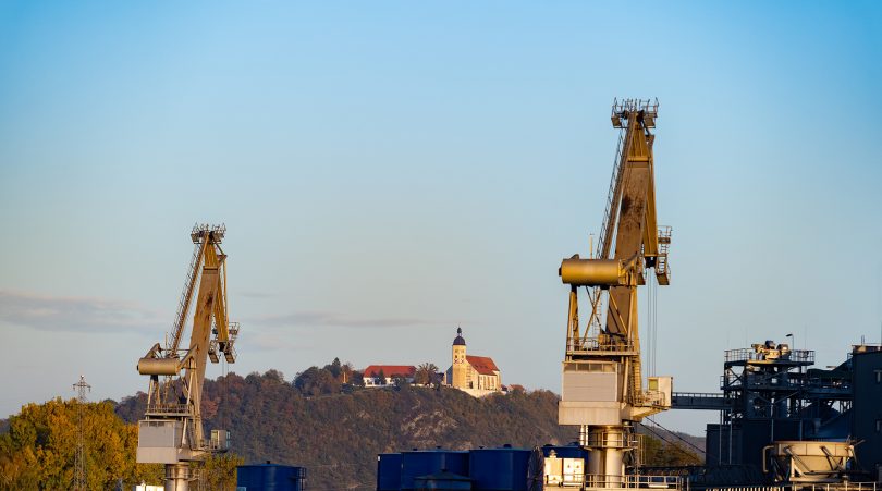 Bericht: Bayerisches Statistisches Landesamt – Foto: stock.adobe.com | Harald Schindler (Hafen Straubing mit Blick auf die Wallfahrtskirche am Bogenberg)