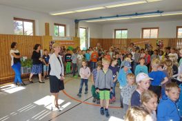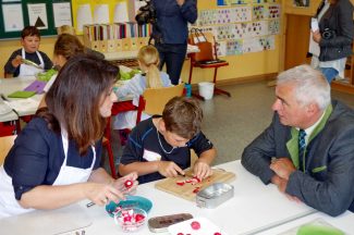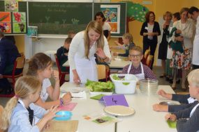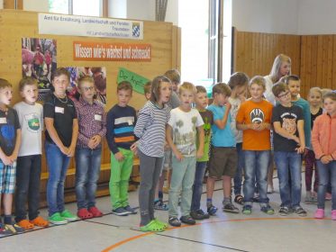 „Wo kommt mein Essen her? Und wie wächst und schmeckt es?“ – diese Fragen beantworteten sich im Rahmen eines mehrwöchigen Projektes die Schülerinnen und Schüler der Grundschule von Marquartstein im Landkreis Traunstein auf lehr- und unterhaltsame Weise selbst. Zusammen mit ihren Lehrkräften, mit Unterstützung des Elternbeirates und in guter Abstimmung mit dem Amt für Ernährung, Landwirtschaft und Forsten in Traunstein kamen die Schüler eng mit ihrer heimatlichen Natur in Berührung. Pflanzen, Zubereiten und Essen von Gemüse, Kräutern und Salat – dieser Dreiklang unter dem Motto „Wissen wie´s wächst und schmeckt“ stand im Mittelpunkt einer bayernweiten Aktion für zweite und dritte Grundschulklassen mit insgesamt 47 Ämtern für Ernährung, Landwirtschaft und Forsten. Dass den Kindern diese Art des Unterrichts sichtlich Spaß machte, davon konnte sich bei einem Vorort-Termin Bayerns Landwirtschaftsministerin Michaela Kaniber bei der Grundschule in Marquartstein persönlich ein Bild machen. „Gesunde Ernährung in den Schulen ist mir ein hohes Anliegen“, so die Ministerin, die sich freute, von Schulleiterin Irene Neuer zu hören, dass die Kinder mit Feuereifer und Begeisterung bei der Sache waren und dass der Elternbeirat mit einem wöchentlichen Obsttag und mit einer monatlichen Sonder-Aktion die Ziele des Ministeriums und der Schule aktiv unterstützt. „Damit tragen Sie dazu bei, dass den Kindern ein Grundstein für bewusstes Ernähren gelegt wird“, so Ministerin Michaela Kaniber im Beisein von Alfons Leitenbacher, dem Leiter des Amtes für Landwirtschaft in Traunstein, von Schulamtsdirektor Klaus Biersack vom Staatlichen Schulamt Traunstein und von Marquartsteins Bürgermeister Andreas Scheck. Lehrkräfte, Ehrengäste und Schüler bereiteten alsdann gemeinsam eine gesunde Pausen-Brotzeit nach dem Motto „Wrap´n Roll im Klassenzimmer“ vor.