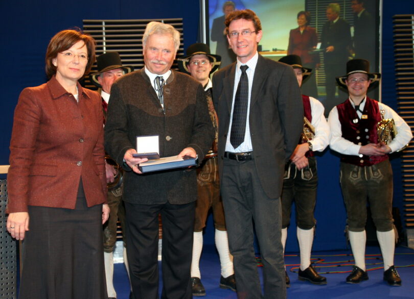 Bericht: Bayerisches Landwirtschafts- und Tourismusministerium – Archiv-Fotos: Hötzelsperger – Erinnerungen an die Auszeichnung an den Samerberger Wanderwart Dr. Georg Stuffer im Jahr 2008 auf der Reisemesse in München für besondere Verdienste um die bayerische Gastlichkeit.