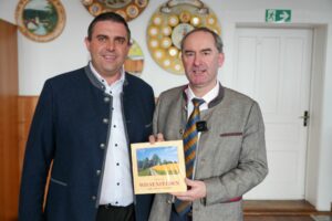 Bayerns Wirtschaftsminister Hubert Aiwanger (r.) zusammen mit Andreas Urban, Bürgermeister der Gemeinde Wiesenfelden. Foto: StMWi/ K. Huber