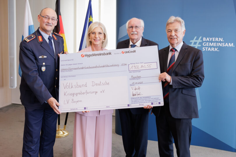Im vergangenem Jahr sind bei der Haus-, Straßen- und Friedhofsammlung für den Erhalt der Kriegsgräber mehr als 1,9 Millionen Euro gespendet worden. Heute wurde das Sammelergebnis bei einem Dankempfang im Sozialministerium an den Volksbund Deutsche Kriegsgräberfürsorge e.V. übergeben. Bayerns Sozialministerin Ulrike Scharf betonte: