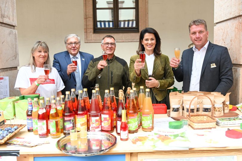 Die drei Sieger – die Stadt Burgbernheim (Lkr. Neustadt a. d. Aisch), die Main-Streuobst Bienen eG (Lkr. Würzburg) und der Hutzelhof Hümmer (Lkr. Haßberge) – waren aus über 70 Bewerbungen ausgewählt worden. Eine Fachjury hat die innovativen Streuobstprojekte gesichtet und die Besten bestimmt. Sie erhielten neben der Urkunde jeweils ein individuell zugeschnittenes Marketingpaket für ihre Projekte. Von getrockneten Birnen und Zwetschgen über allerlei Säfte und Schorlen bis hin zum Secco Kir Regional – die fruchtigen Köstlichkeiten von bayerischen Streuobstwiesen konnten die Besucherinnen und Besucher der Bauernmarktmeile im Innenhof des Landwirtschaftsministeriums auch gleich probieren. „In Bayern haben wir auf unseren Streuobstwiesen rund 2.000 alte Obstsorten – und jede hat ihre ganz eigene Genussformel. Bei uns im Freistaat kann man Natur auch mit dem Gaumen genießen“, so die Ministerin.