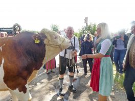 Vom heurigen Auftritt von Bayerns Umweltministerin Ulrike Scharf beim Keferloher Montag einige Bilder, unter anderem mit den Begegnungen mit Gebirgsschützen aus Flintsbach.