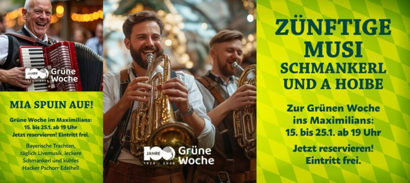 Täglich während der Grünen Woche spielen bayerische Musikanten auf – Nähere Informationen: www.maximilians-berlin.de – Tel. 030-20450559