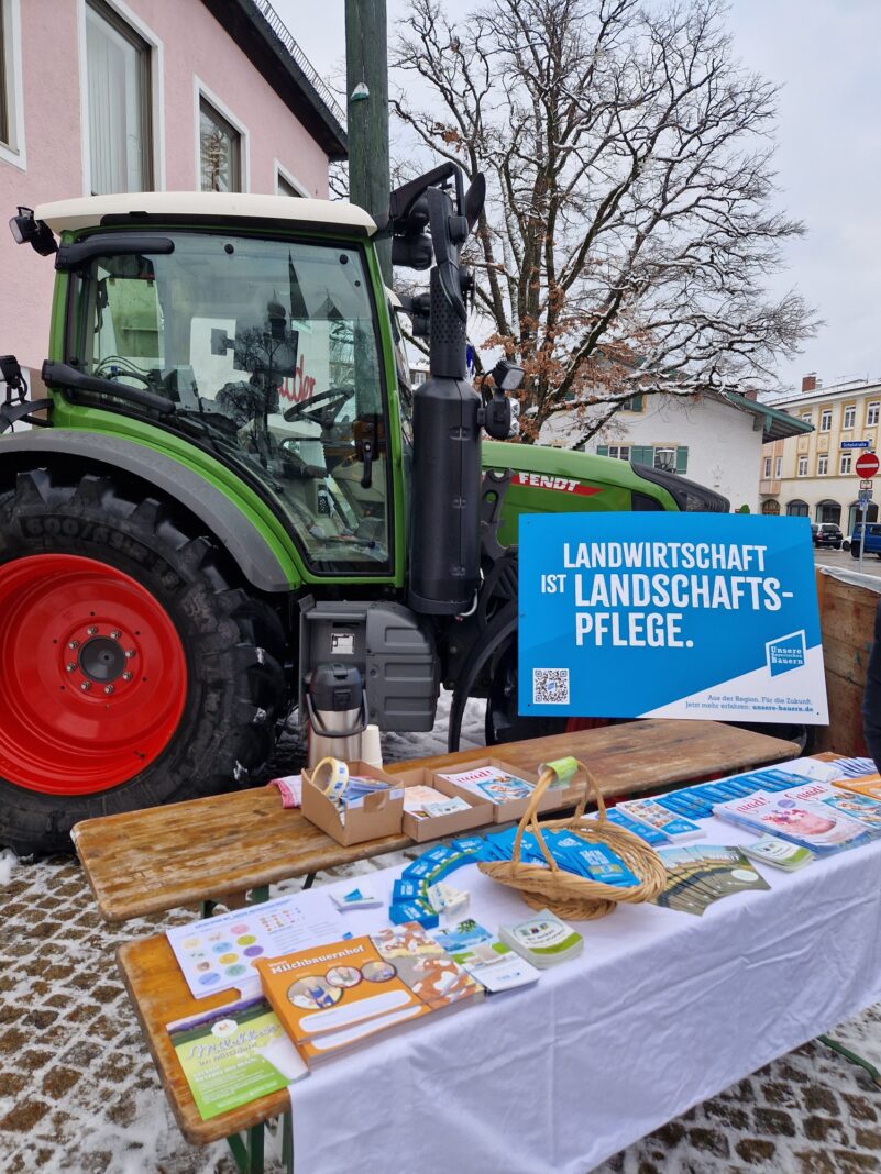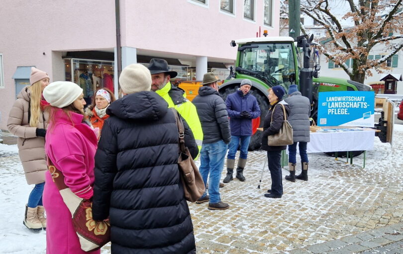 Nach dem Motto: “Mit den Landwirten im Dialog” organisierte der Bayerische Bauernverband am Priener Marktplatz einen Ort der Begegnung, um mit der Bevölkerung vor Ort ins Gespräch zu kommen.