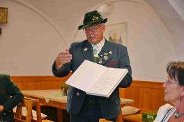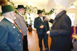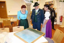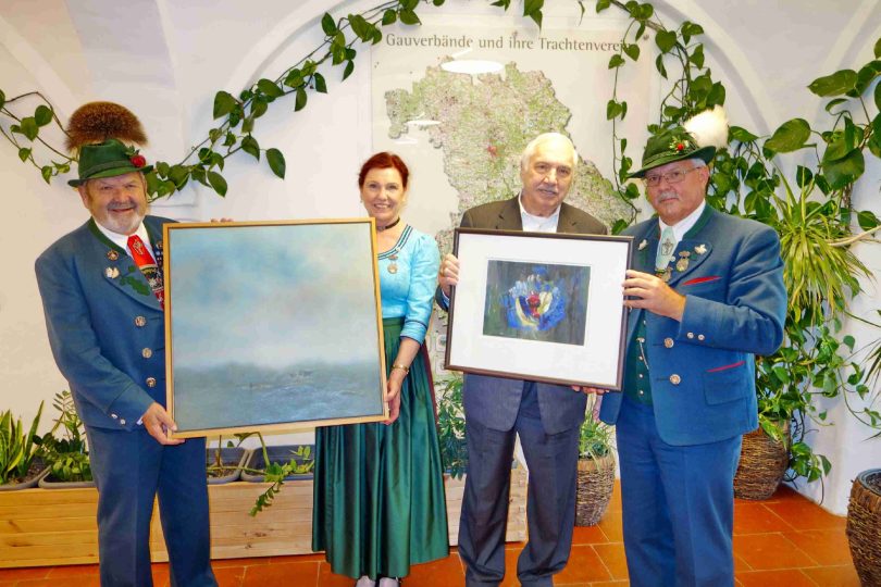 „Alle Werke der drei Künstler waren bereits in bedeutenden Ausstellungen und deren Wert möge im Falle einer Veräußerung oder Versteigerung die bayerische Trachtenbewegung fördern“ – mit diesen Worten übergab Unternehmer, Investor und Kunstsammler William Hetzler seine Schenkung an den Landesvorsitzenden Günter Frey und an den Ehrenvorsitzenden Max Bertl vom Bayerischen Trachtenverband. Diese bedankten sich für die großzügige Spende und bezeichneten diese als weiteren Beweis und Beitrag zur Trachtler-Freundschaft mit dem Gauverband Nordamerika. William Hetzler gehört nämlich als Ehrenmitglied dem Trachtenverein Schlierachtaler Stamm in New York an. Ebenfalls mit dabei bei der Schenkung in Holzhausen war dessen weiteres Mitglied Bob Hugel. Dieser überbrachte als Beisitzer vom Gauverband Nordamerika die besten Grüßen von dessen 1. Gauvorstand Tom Vogt. Dieser ließ die herzlichsten Trachtengrüße aus Kanada und aus den USA übermitteln, dazu hieß es: „Es ist schön, nach mehr als einem Jahr des Zögerns über Covid-19 wieder etwas Persönliches zu machen. Es ist das Zusammenkommen, das unsere Freundschaft stärkt“. Zugleich gratulierte Tom Vogt dem neuen Landesvorsitzenden Günter Frey und bat um weiterhin gute Zusammenarbeit. Günter Frey bedankte sich bei den Trachtenfreunden von Nordamerika mit einem signierten Buch „Trachtenlandschaft“ Bayern.