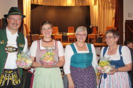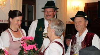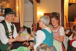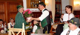 Markus Schmid und Eva-Maria Kotte, beide aus Kiefersfelden, als musikalische und organisatorische Leiter zeigten sich beim anschließenden Abschluß-Hoagascht im Saal des Gasthofes Maurer angetan über die auch heuer wieder spürbare Harmonie zwischen den über 80 Teilnehmern, Referenten und Musiklehrern; geselliger Höhepunkt war der Musikantenausflug auf die Käseralm. Gut angenommen wurden auch das Jubiläums-Kegeln in der Gaststätte Alpenrose, der Vortrag „Volksmusik im Wandel der Zeit“ von Ernst Schusser vom Volksmusikarchiv des Bezirks Oberbayern sowie die Notenausstellung im Trachtenheim. Alt bewährt hatten sich einmal mehr das eigene Kinderprogramm und der offene Volkstanzabend im Gasthaus Maurer. „Ja i g´frei mit s´ganze Johr auf des Musikseminar. Do wird g´sunga, tanzt und g´lacht und a ganz vui Musi gmacht“ – mit diesem eigens für das Jubiläum einstudierten Refrain für ein Seminarlied erfreute Rosa Karger aus der Holledau. “Was wären wir ohne die vielen freiwilligen und ehrenamtlichen Helferinnen und Helfer?“ – in diesem Sinne galt ein besonderer Dank den Eheleuten Anneliese und Sepp Hieber, die sich seit über 30 Jahren um Übernachtungs- und Seminarraum-Möglichkeiten kümmern. Ein weiterer Dank galt den Wirtsfamilien von Grainbach, dem Trachtenverein, den privaten Häusern sowie Hans Sattlberger für dessen Ortsbegehungen. „Ohne den Stuffer Hans, der die Volksmusikwoche vor 40 Jahren ins Leben gerufen hat, würde etwas fehlen“ – mit diesen Worten wurde auch ihm ein kleines Erinnerungs-Präsent überreicht. Auch Dritte Bürgermeisterin Annemarie Braun von der Gemeinde Samerberg hatte zusammen mit Gäste-Informations-Leiterin und Seminarteilnehmerin Monika Schimanski allen Grund zu danken, ihr Dank galt vor allem dem Kulturverein Rosenheim als Veranstalter der Samerberger Volksmusikwoche, den vielen Spendern und Sponsoren, Gemeindereferentin Luise Schudock sowie den Organisatoren Markus Schmid und Eva-Maria Kotte. Abgerundet wurde der Abend natürlich mit viel Musik von Seminar-Teilnehmern und Lehrkräften und mit dem Versprechen, sich nächstes Jahr wieder nach Ostern zu einer Volksmusikwoche auf dem Samerberg zu treffen.