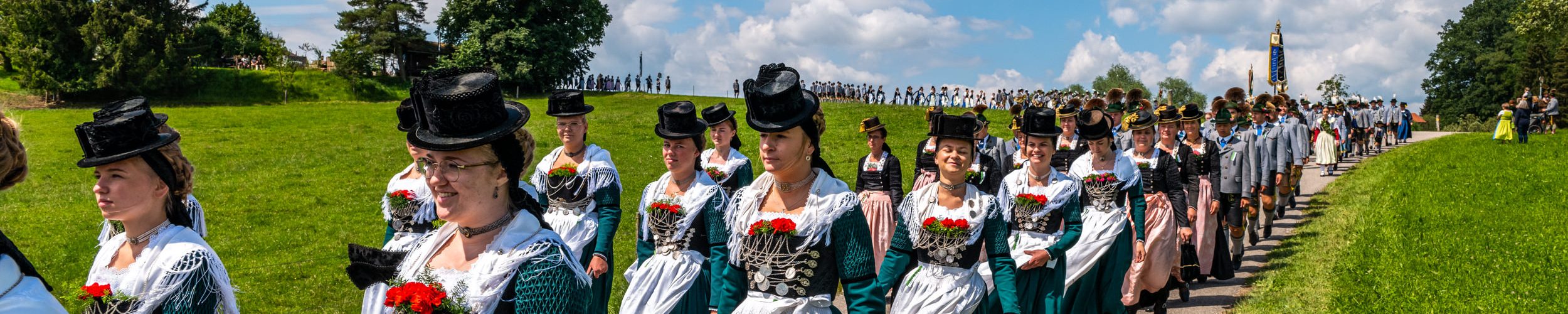 Hoch her ging es am Gaufestsonntag, 10. Juli, in Hochstätt in der Gemeinde Schechen und beim Bayerischen Inngau-Trachtenverband, als Trachtlerinnen und Trachtler sowie Blasmusikanten sich zum 75. Geburtstag des Festvereins „Almarausch“ Hochstätt und zum 102. Gautrachtenfest des Bayerischen Inngau-Trachtenverbandes versammelten. Ideales Wetter herrschte beim Kirchenzug, beim Gottesdienst in Ziegelreuth und beim nachmittäglichen Festzug.