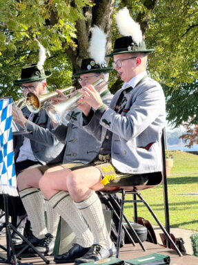 Auch die kleinen Gäste kamen voll auf ihre Kosten: Zwischen Kinderschminken mit Lisa, Bastelaktionen mit Robert Urban, Luftballontiere basteln mit Franz, einer Hüpfburg und dem beliebten Dosenschießen mit dem Tennisverein Prien war für leuchtende Kinderaugen reichlich gesorgt. Neben den Auftritten der Blaskapelle Prien am Chiemsee e.V. und dem GTEV Prien am Vormittag, beteiligten sich zahlreiche Priener Vereine mit kreativen Mitmachaktionen und informativen Ständen. Die Liedertafel Prien begeisterte mit internationalen Liedern und lud anschließend zum offenen Singen am Pavillon ein. Nicht nur die kleinen Besucher waren bei dem spannenden Wissensquiz des Sudetendeutschen Landsmannschaft-Bundesverbandes-e.V. gefragt – hier konnte die ganze Familie einen Preis gewinnen. Und auch der Rotary Club Chiemsee und die Initiative Prien bleibt bunt präsentierte sich auf dem farbenfrohen Fest mit interessanten Infoständen. Für das leibliche Wohl sorgten regionale Anbieter und Streetfood-Stände, die kulinarische Vielfalt auf den Teller brachten – von bayerischer Brotzeit bis hin zu internationalen Spezialitäten. Mit dabei: MahlAnders, Bodler Crêpes, das Hotel Luitpold am See und das Yachthotel Chiemsee. Trotz des kühlen Herbstwindes an den Priener Schären zog das Fest „Straßenkunst & Tradition – Einheit in Vielfalt“ zahlreiche Besucherinnen und Besucher an. Inmitten von buntgemischter Straßenkunst, Musik und Kulinarik wurde ein starkes Zeichen für Zusammenhalt, kulturelle Offenheit und gelebte Vielfalt gesetzt.