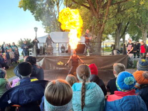 2025-10-03 Pressebild Feuershow Marc King Straßenkunstfest&Tradition Einheit in Vielfalt c-Markt Prien a. Chiemsee
