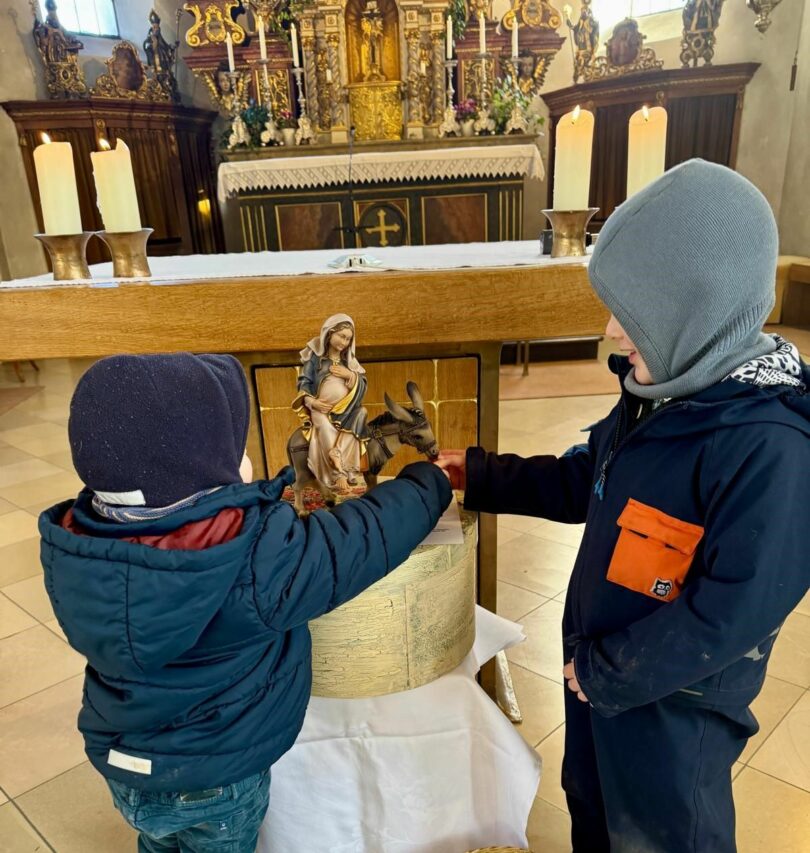 Beim ersten Adventsgottesdienst in der Törwanger Kirche „Mariä Himmelfahrt“ konnte Diakon Günter Schmitzberber die Marienfigur an den Benedikt und den Konrad übergeben. Dabei sprach er folgende Worte im Sinne der schwangeren Maria: